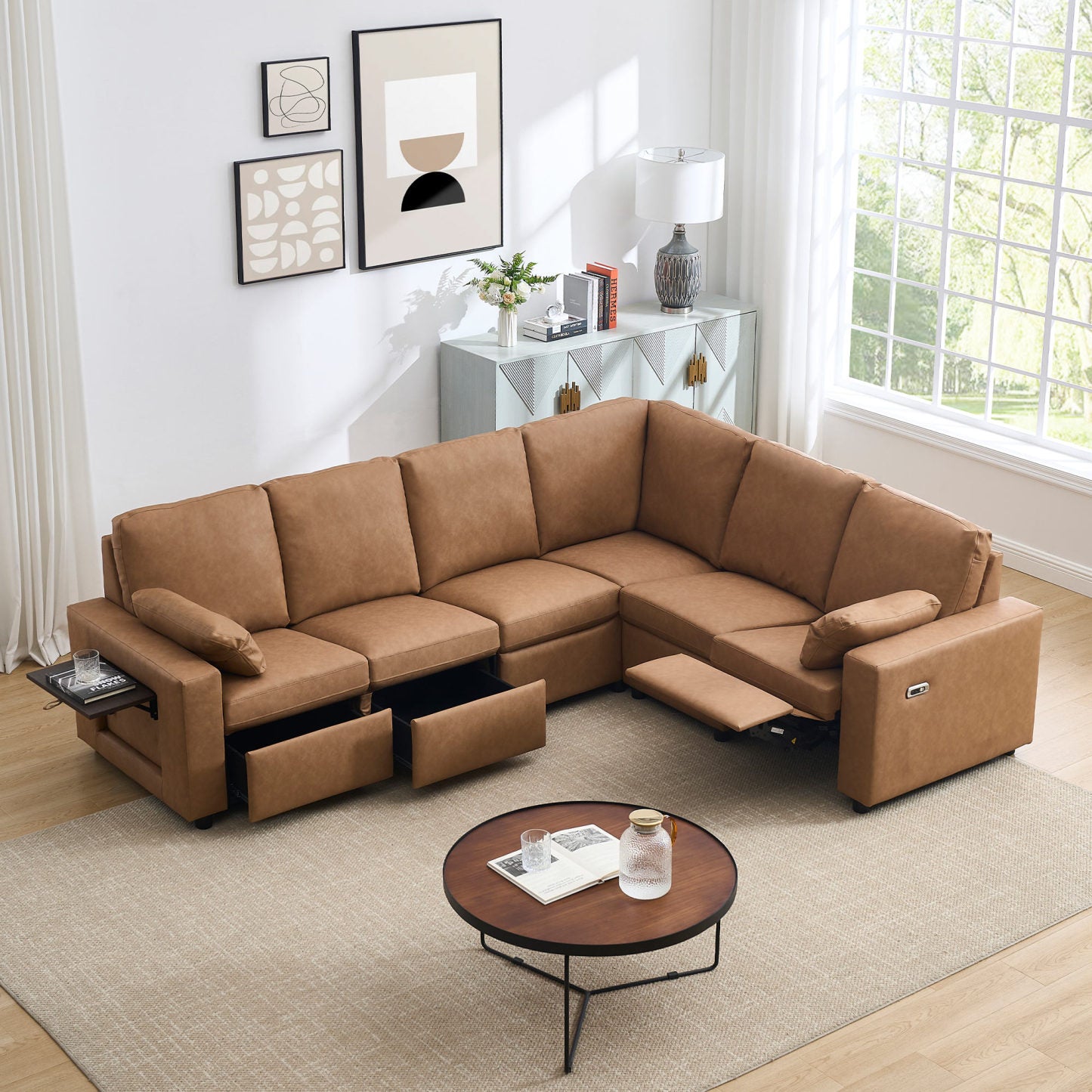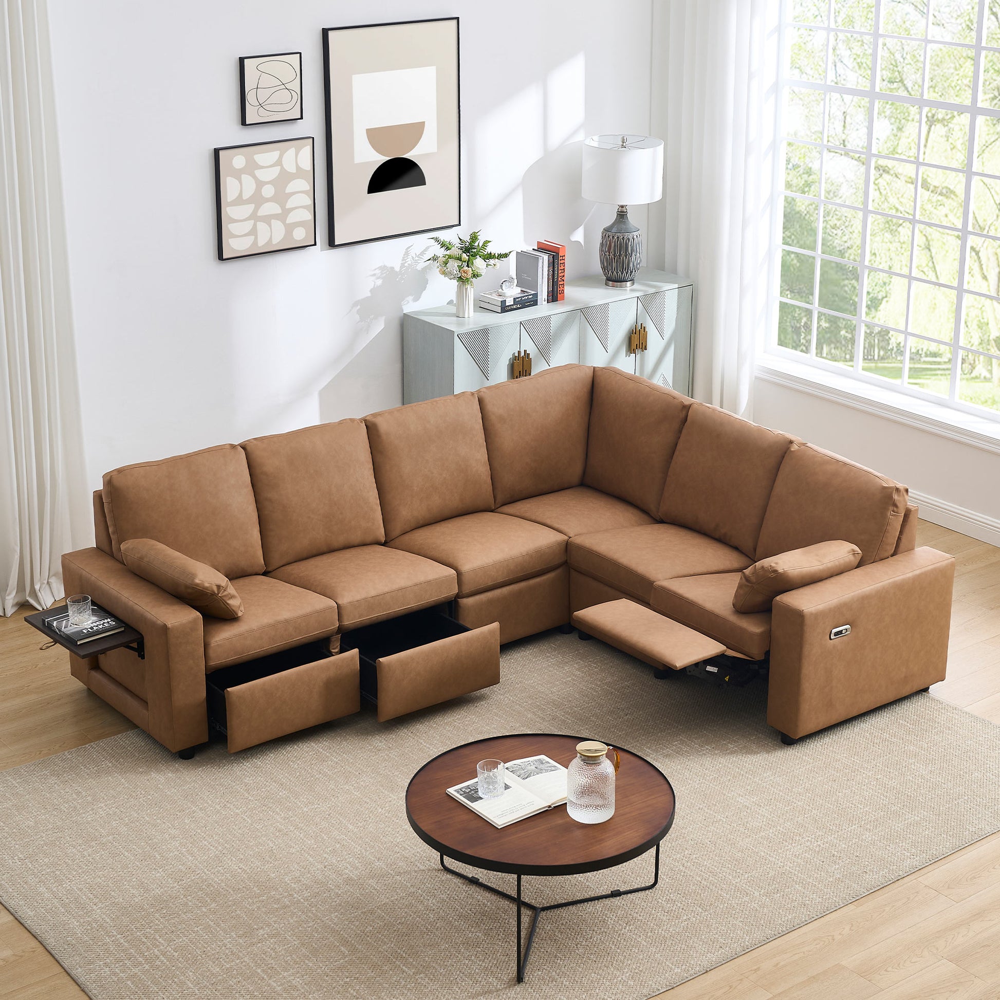Levi Modern Reclining Sectional Sofa with Storage and Power Recliner