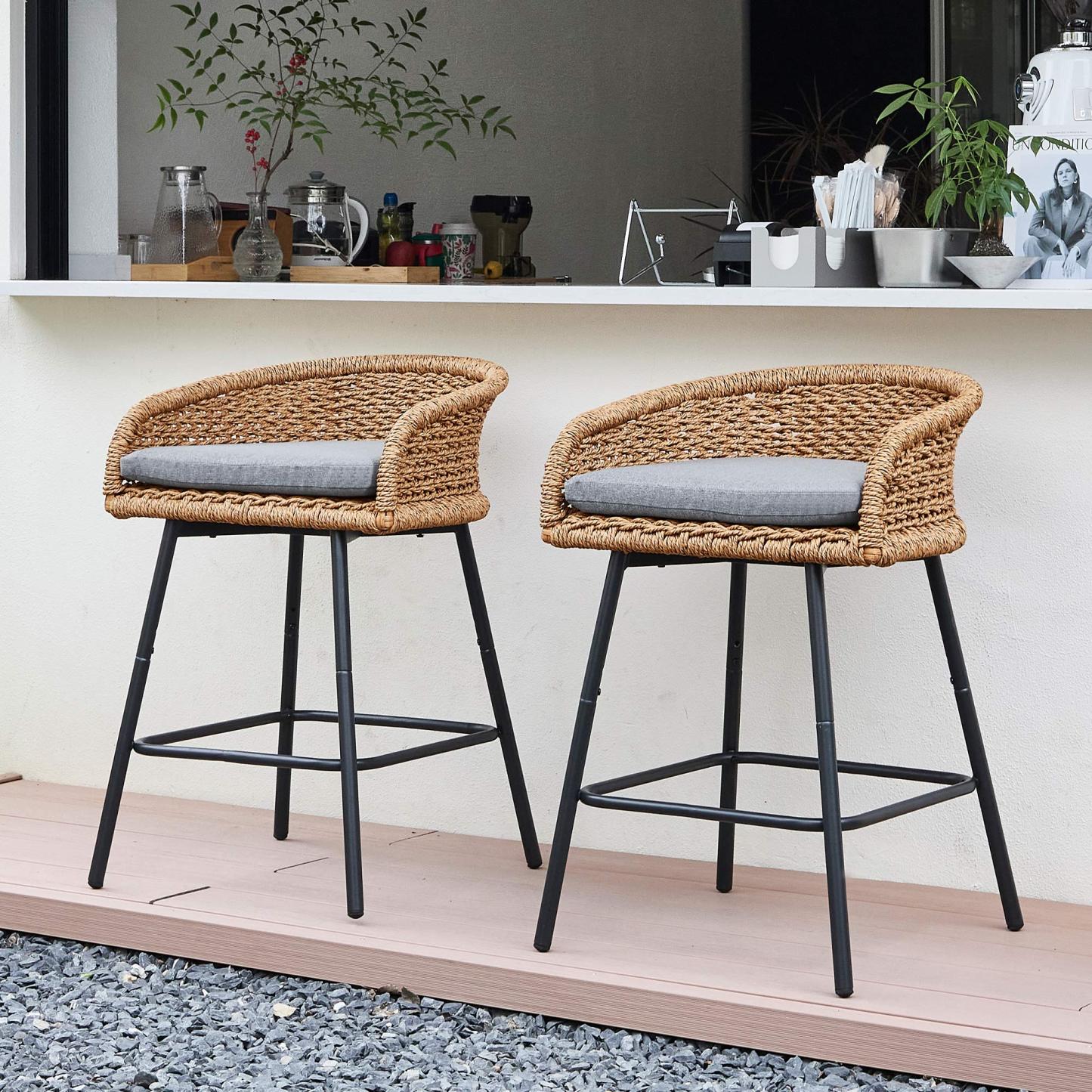 Neil Outdoor Cane Bar Stools Set